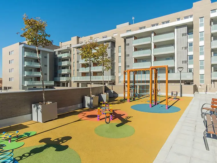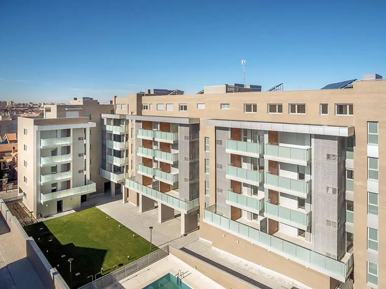 Promoción, construcción y comercialización de 62 viviendas en altura. Urbanización privada con piscinas de cloración salina para adultos y niños, zona de fitness, spa.